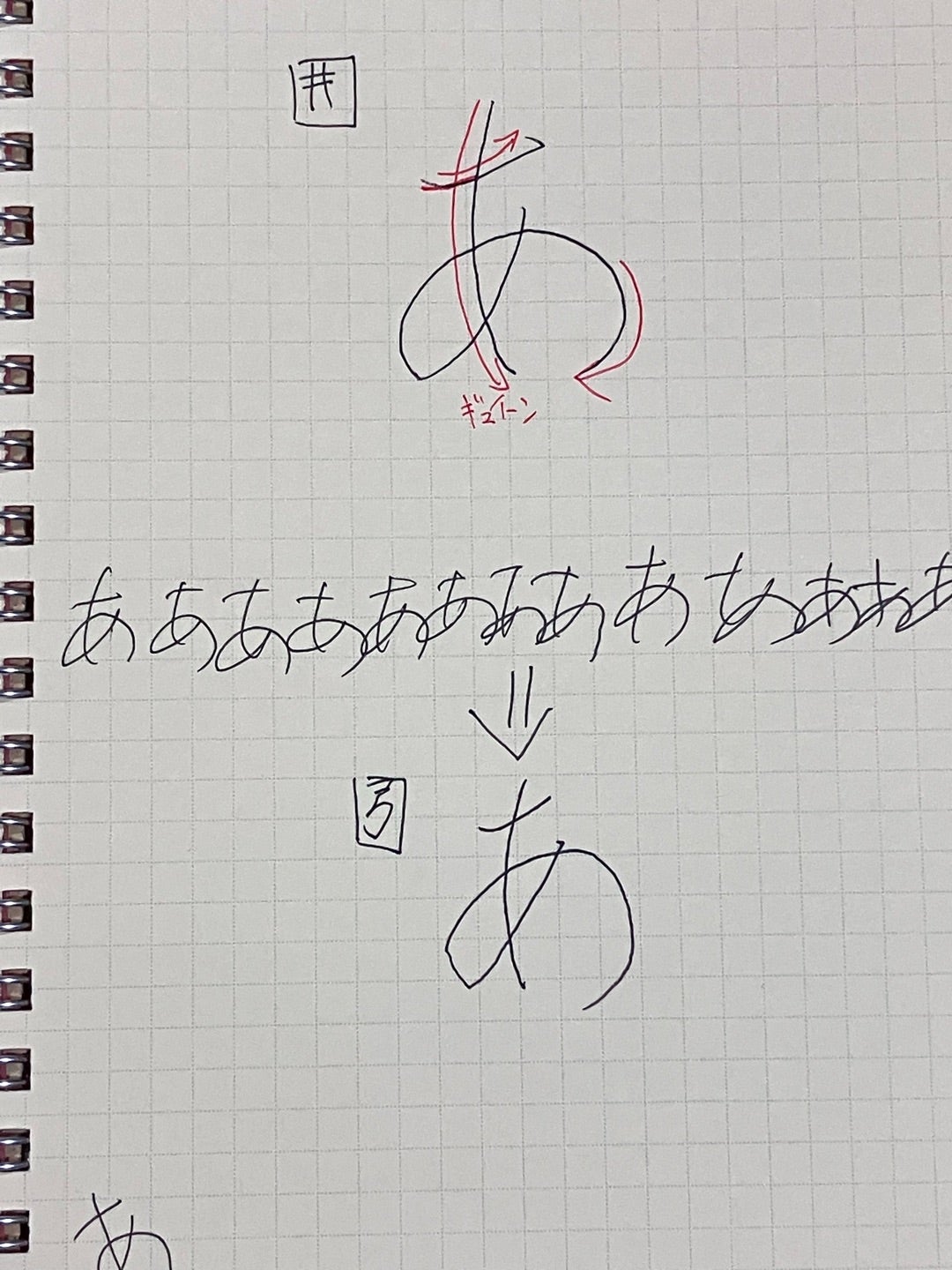 平仮名の『あ』の書き方を教えて貰いました笑