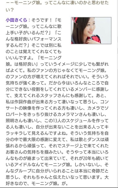 【モーニング娘。】小田さくら「『アイドルも1人の人間』という考えは詭弁 マイナス要素は一切見せない アイドルは本気で夢と希望を与えなきゃいけない」
