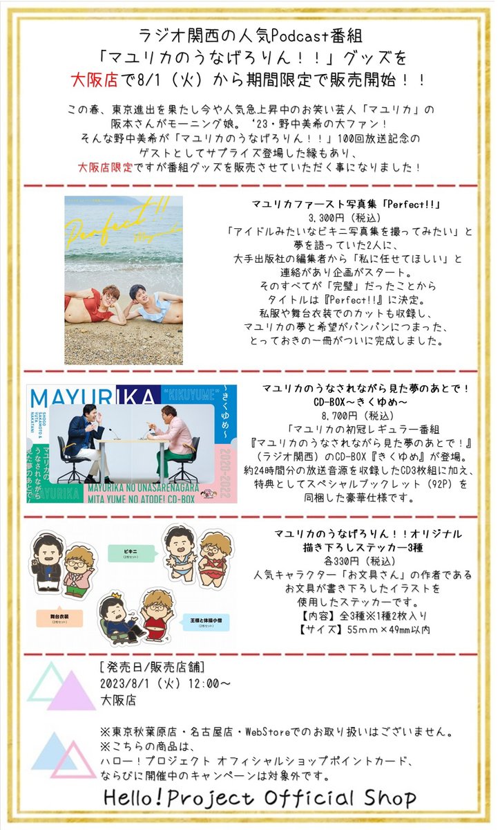 芸人『マユリカ』のラジオに野中美希が出演した結果、ハロショでマユリカのグッズを取り扱うことになるwwwwww