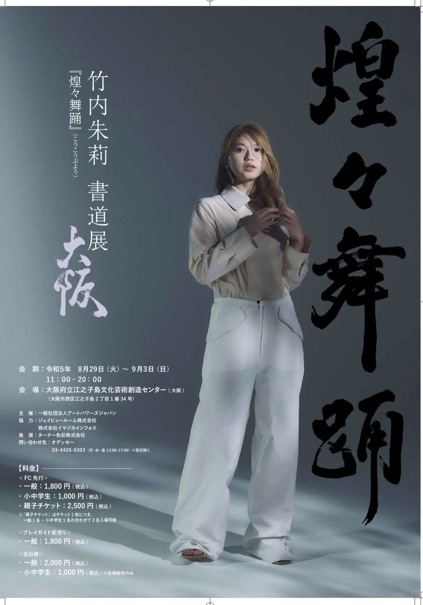 竹内朱莉書道展「煌々舞踊 大阪」のビジュアルポスター公開