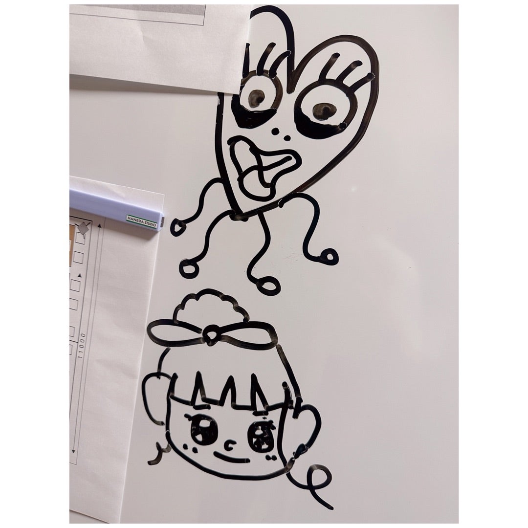 ホワイトボードに辻ちゃんネルキャラクター