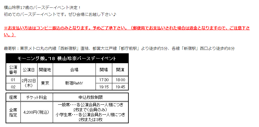 横山玲奈17歳のバースデーイベント決定!