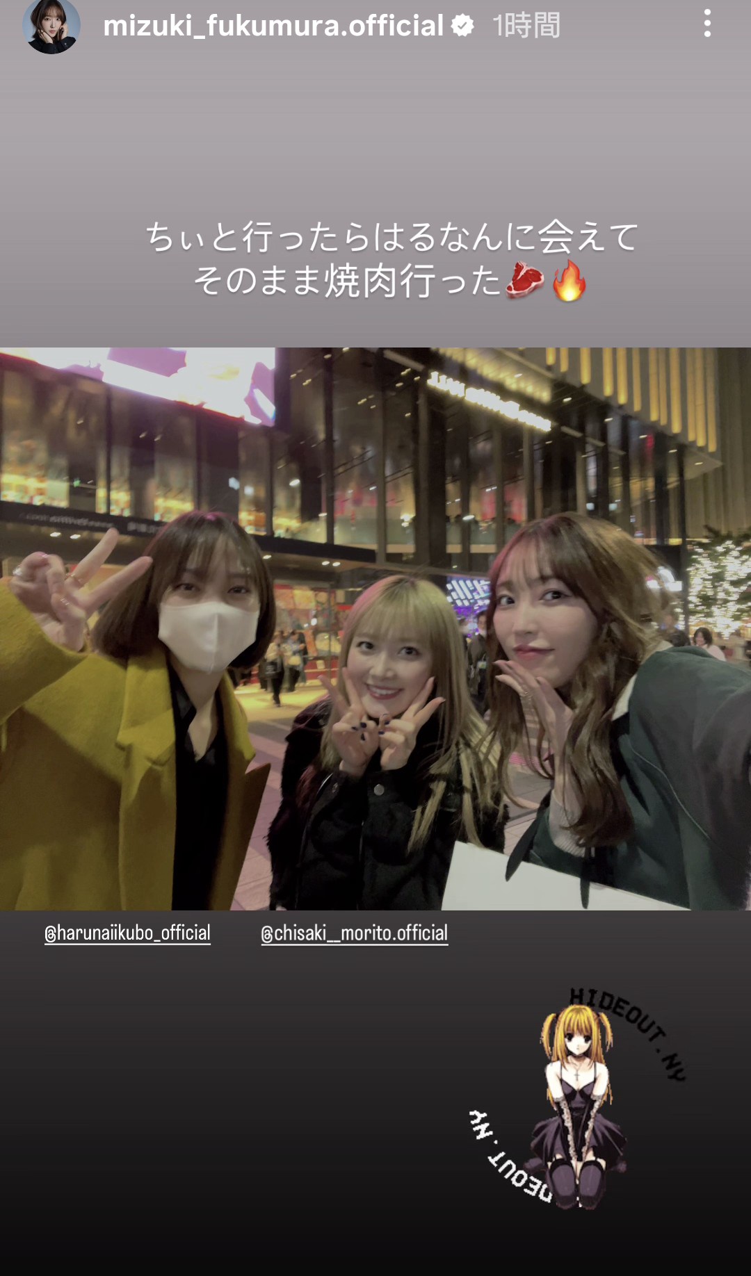 譜久村聖と森戸知沙希が鞘師里保主演「DEATHNOTE」を観に行ったら飯窪さんと遭遇!3人で焼肉