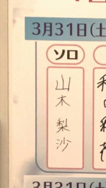 そう、山木梨沙の「山」の字がいびつですね。