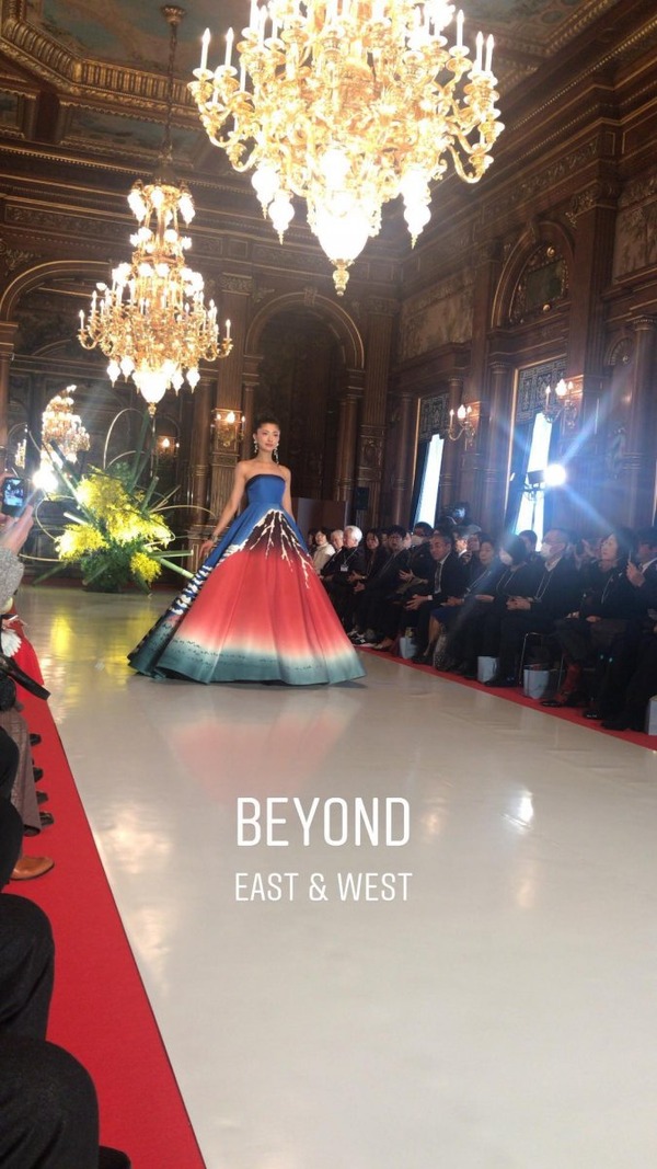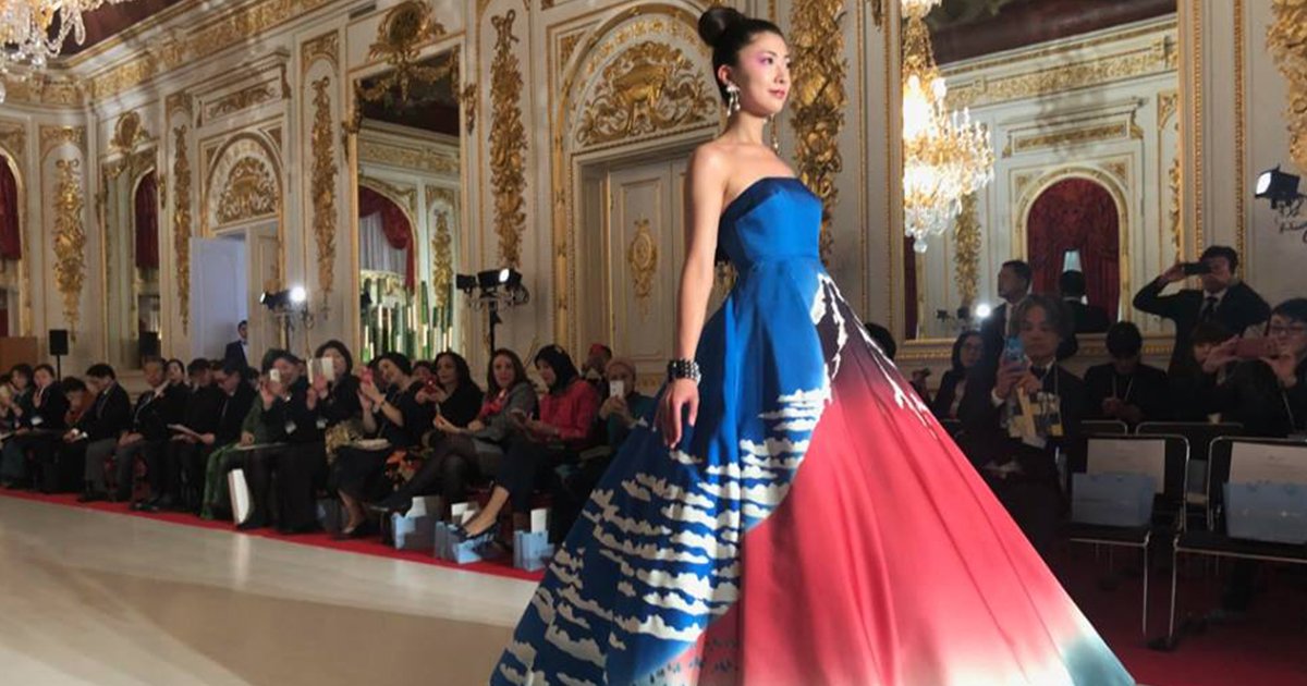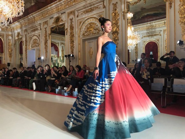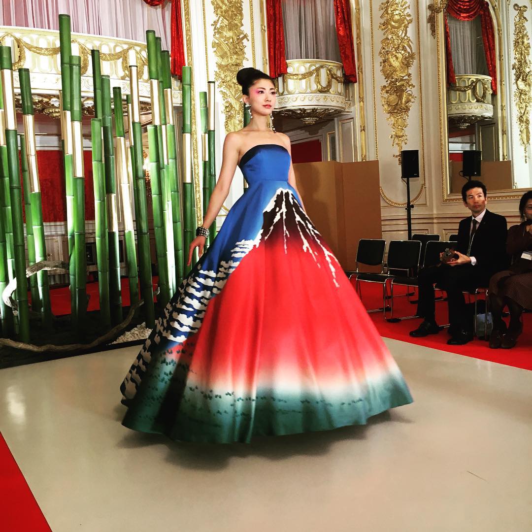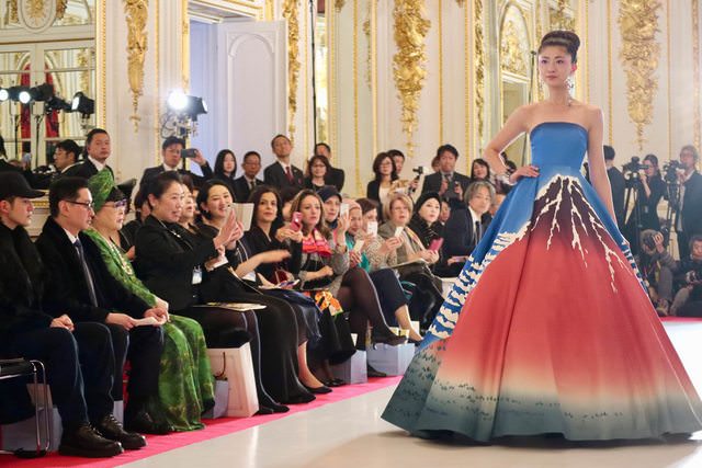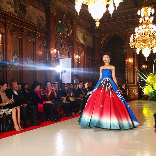 ユミカツラが18年春夏オートクチュールを国宝・迎賓館赤坂離宮で披露、北斎の富士を描いたドレスなど約60点 –