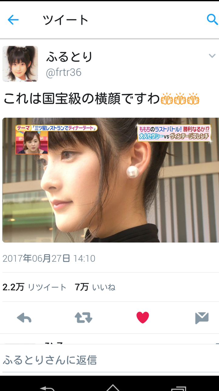 【Twitter】ももちの横顔画像、驚異の7万いいね突破