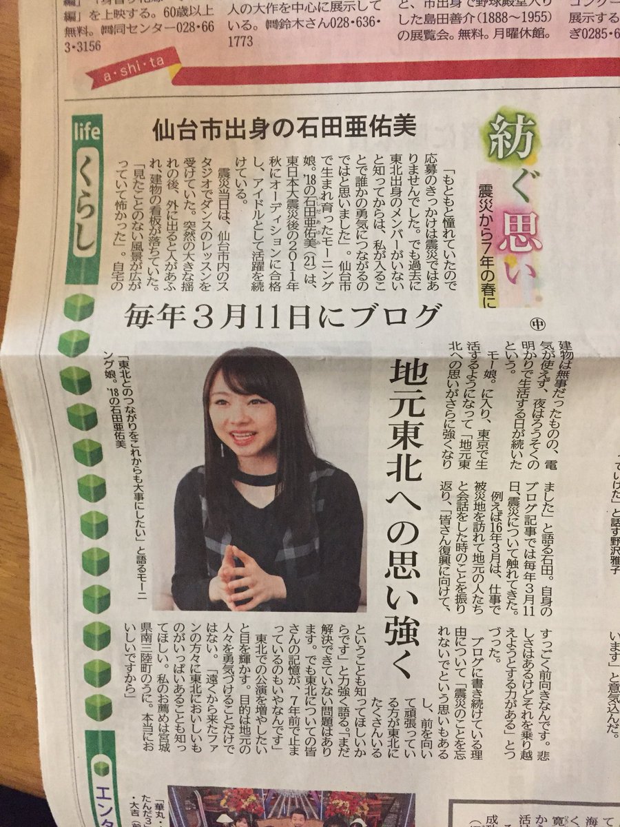 【モーニング娘。】【朗報】石田亜佑美ちゃんの震災への思いが日本各地に届く