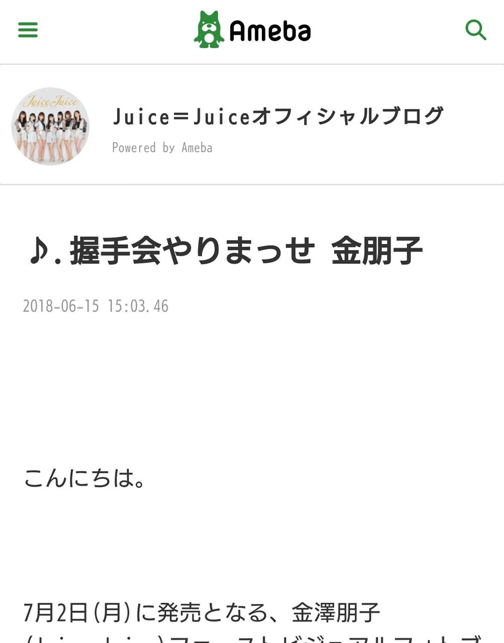 投稿日 2018年6月15日 17:15:33 (ハロプロ×LIFE)