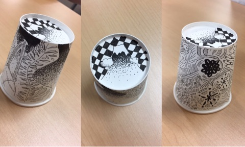そのペンがなぜか懐かしくてなんだろ??って思ってたら中学校の美術の授業で使ったことあるペンでした!だから紙コップにおえかき!