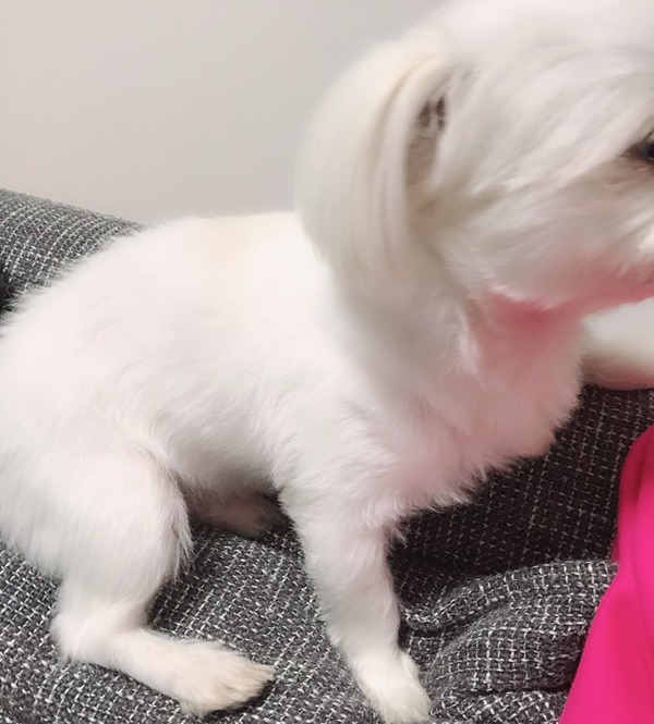ぬいぐるみみたいなわんちゃんでした。マルチーズなのかな?
